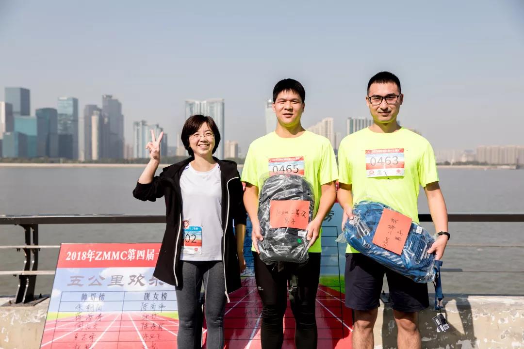 五公里组男女榜首,分别由板材开发部朱朝阳和资金管理中心陈商玮获得。
