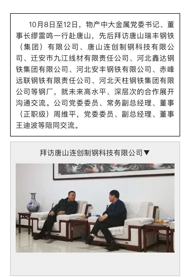 物产中大金属党委书记、董事长缪雷鸣一行赴唐山拜访交流