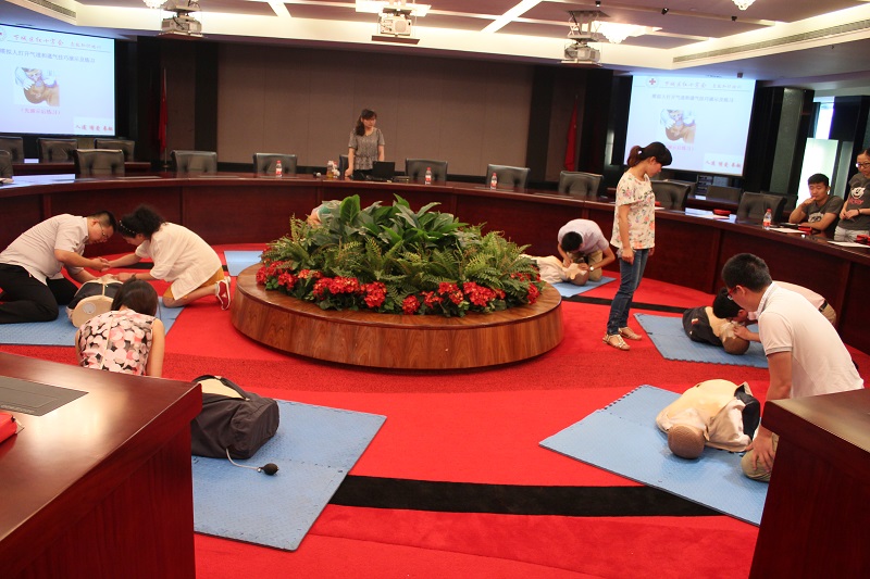 来自红十字会的培训老师通过多媒体教学和现场模拟演练的方式,对救护概念、心肺复苏技术、创伤救护技术和常见急症应急处理等知识进行讲解与示范。参训员工根据指导,现场进行了人工呼吸、心肺复苏和医疗包扎等具体操作的模拟演练,收到了良好效果。由于培训内容实用、有效,吸引了很多未及正式报名的同事旁听学习。经过认真学习,参加第一期培训的24名员工,全部顺利通过现场考试,获得了由省红十字会颁发的救护员证书。